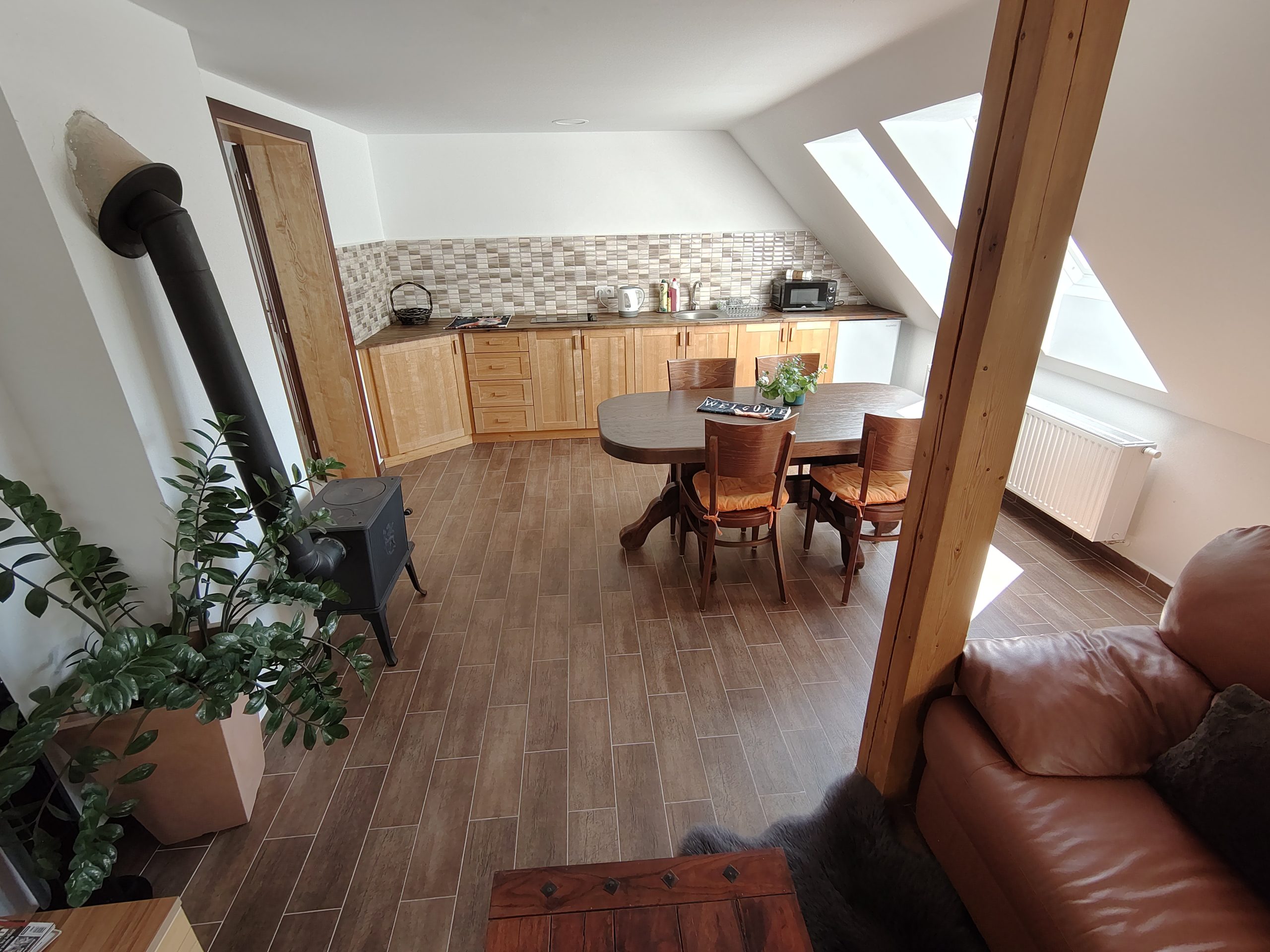 4 lůžkový apartmán Šumava s vlastním barem, výčepním zařízením a kuchyní se sporákem a myčkou. Hned před apartmánem je venkovní posezení s grilem. Pejsci vítáni.